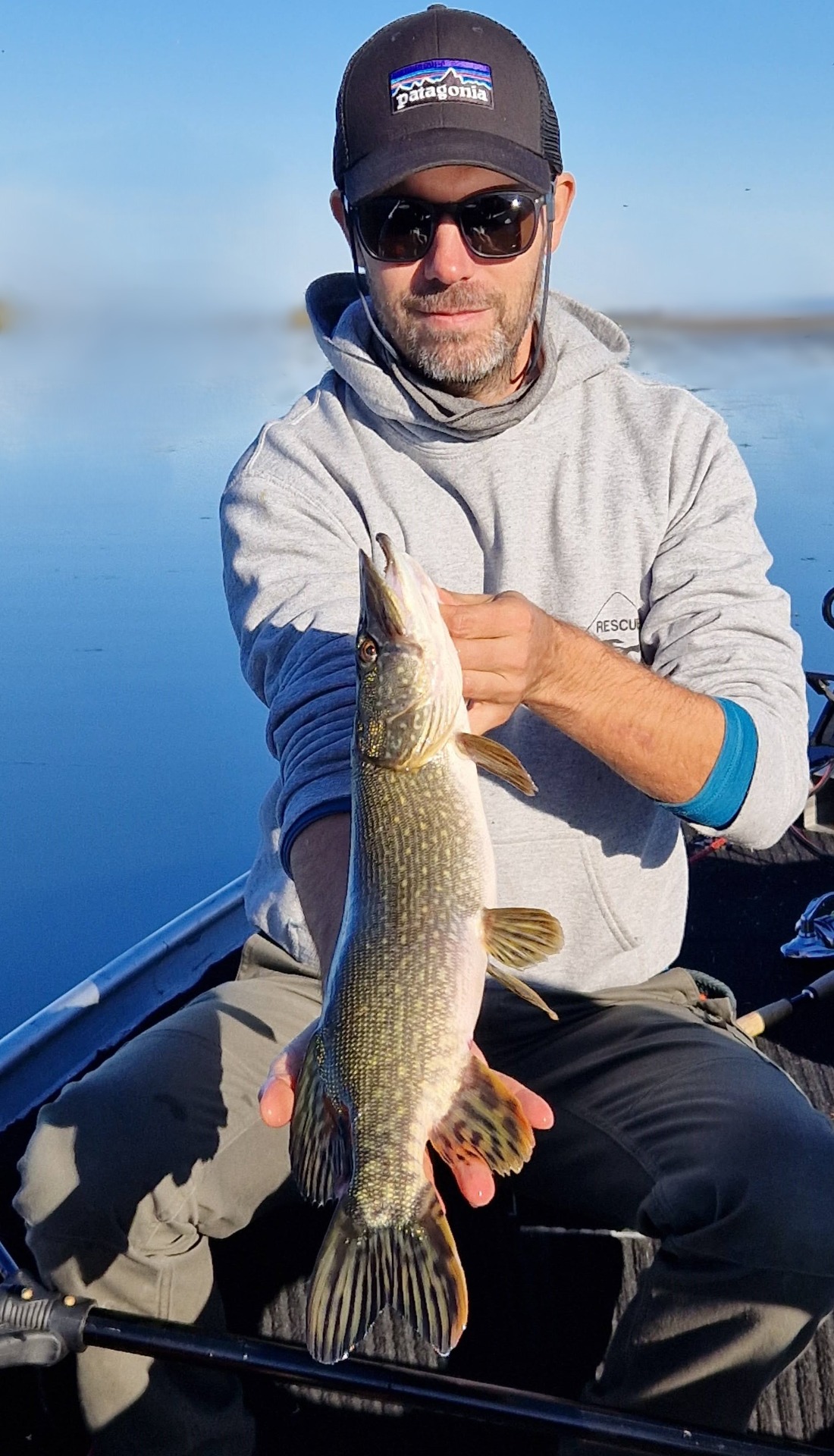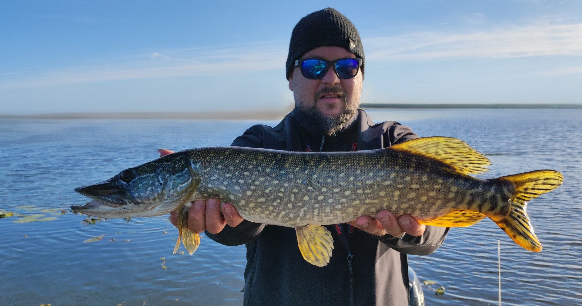 Első dobásaink bemelegítésnek bizonyultak, nehezen találtuk a halak ritmusát. A körforgók és a felszíni wobblerek egymás után kerültek a kapocsba és mi minden dobásban halat sejtettünk. sikerült pár kisebb sügeret és csukát becsapni, de az első méretes halra majd 1 órát kellett várni. Cimborám egy körforgó segítségével végre egy gyönyörű csukát tarthatott a kezében.