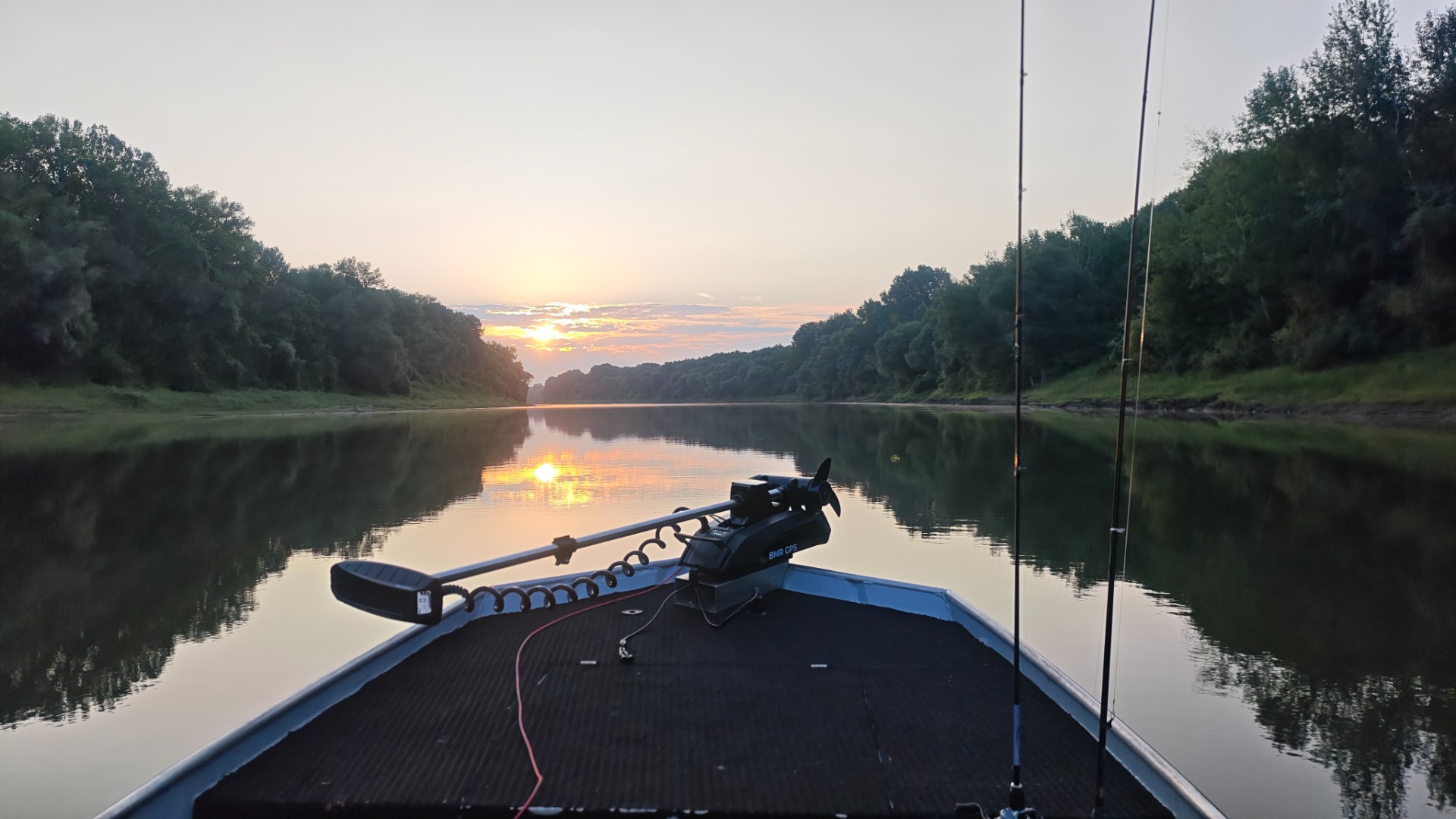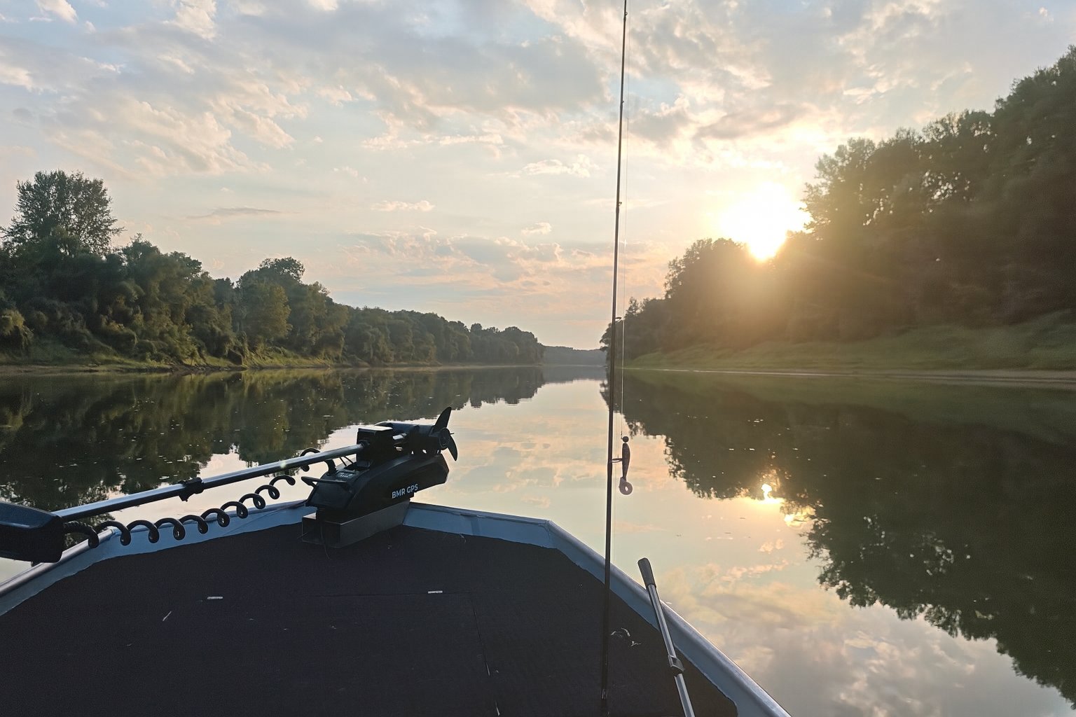 A parton még minden mozdulatlan. A Tisza vize alacsonyan áll, de ez nem okoz gondot a sólyázásnál, egy kis gyakorlattal könnyen vízre kerül a csónak. Csak a felfelé úton, nehogy zátonyra fussak. A bepakolás rutinszerű: botok, dobozok, csalik, mentőmellény, hűtőláda. A nap ekkor már bátortalanul pirkan a fák mögött, szétkenve a világos színeket a horizont peremén. Egy fél órás motorozás vár rám a kiskőrei vasúti híd magasságáig. Onnan kezdem majd a lecsorgást.