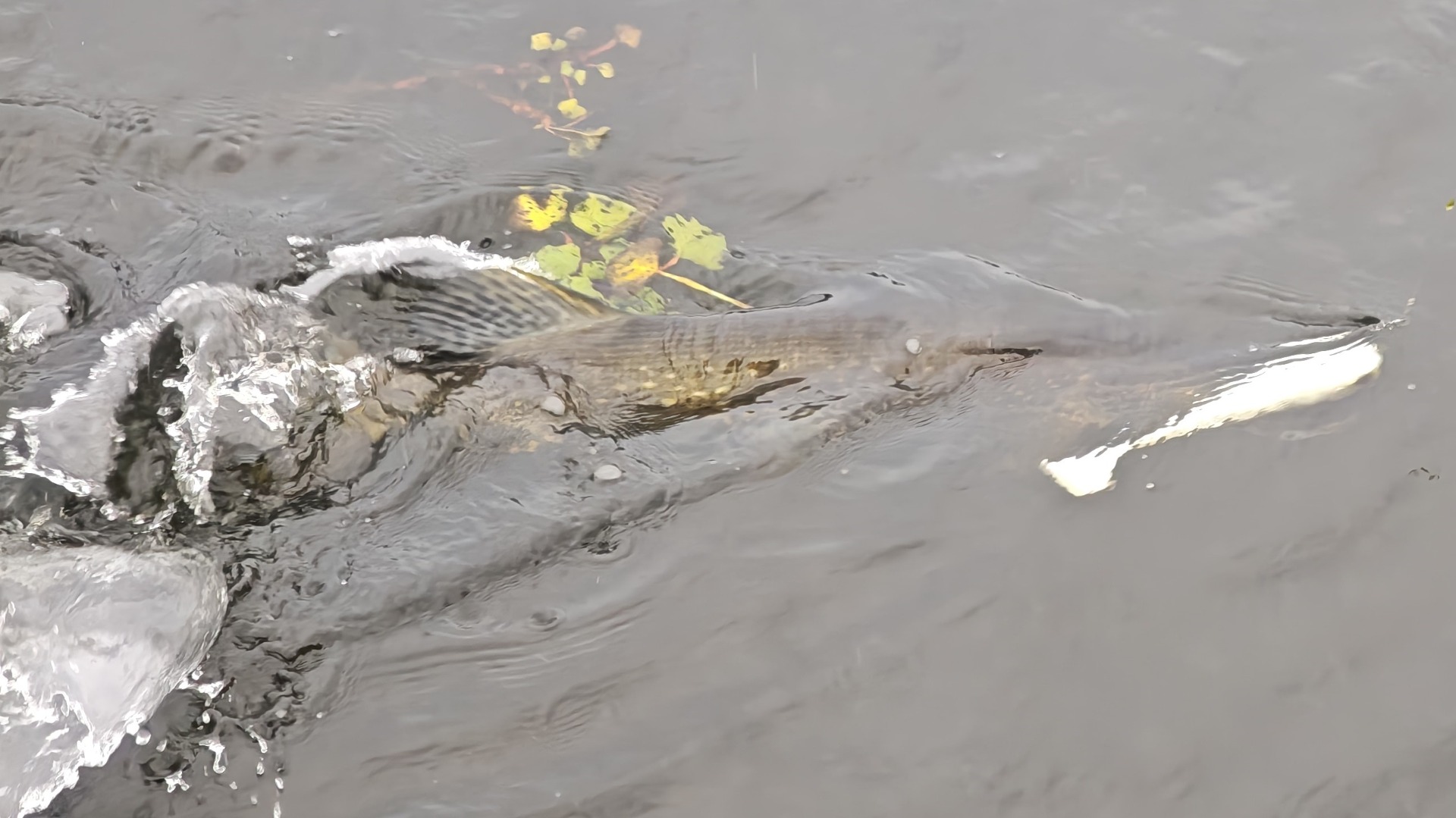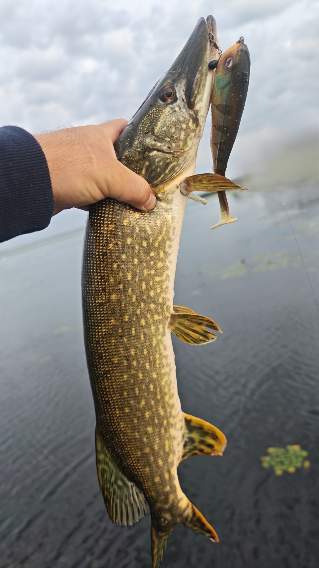 A váltás drasztikus volt: újra egy fehér Illex Dunkle 17 cm került a heavy bot kapcsába, nagy test, nagy ígéret, nagy csobbanás. A tündérrózsa-szigetek közé céloztam vele és második dobásra a beesőt le is verte egy csuka. A hal a vízből kirobbanva a fejét rázta, hogy megszabaduljon a horogtól. Gyönyörű hal volt, aki egyre jobban távolodott a csalimtól…. Újabb dobás, hatalmas tolóhullám, erős kapás, üres bevágás. Ilyen nincs! Újra és újra a tolóhullám mögé dobtam, de a többi néma csend.
